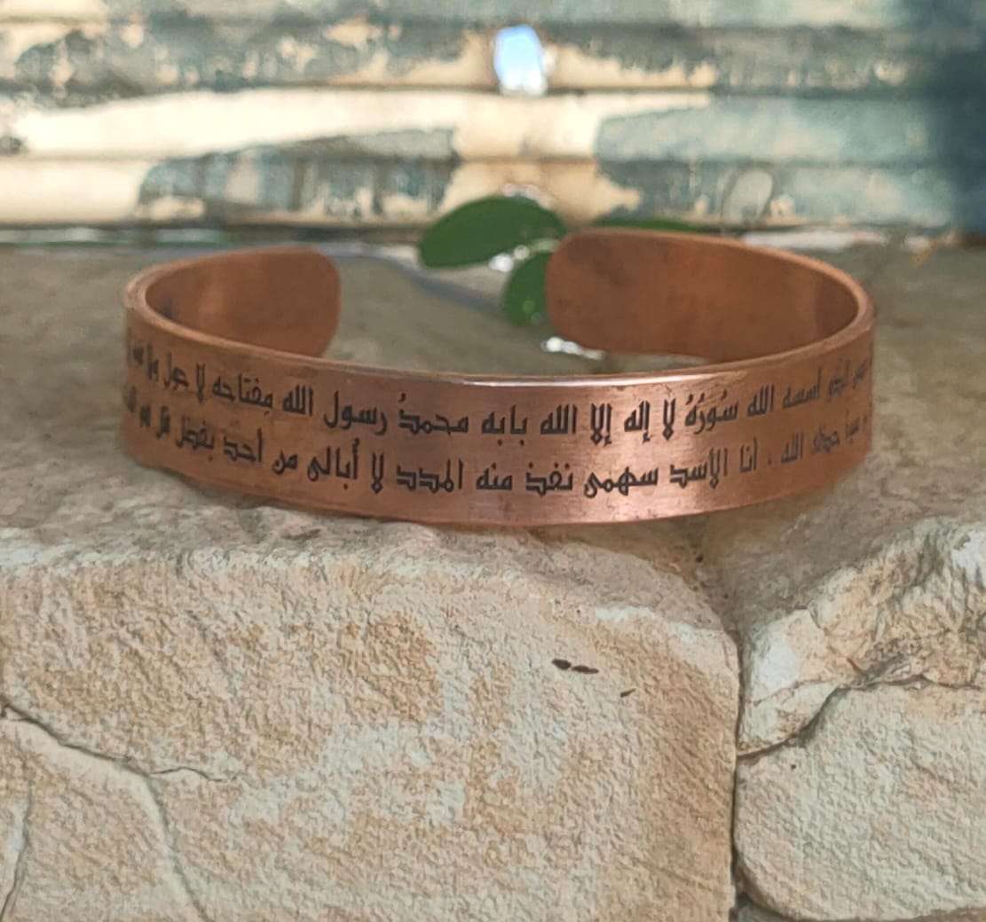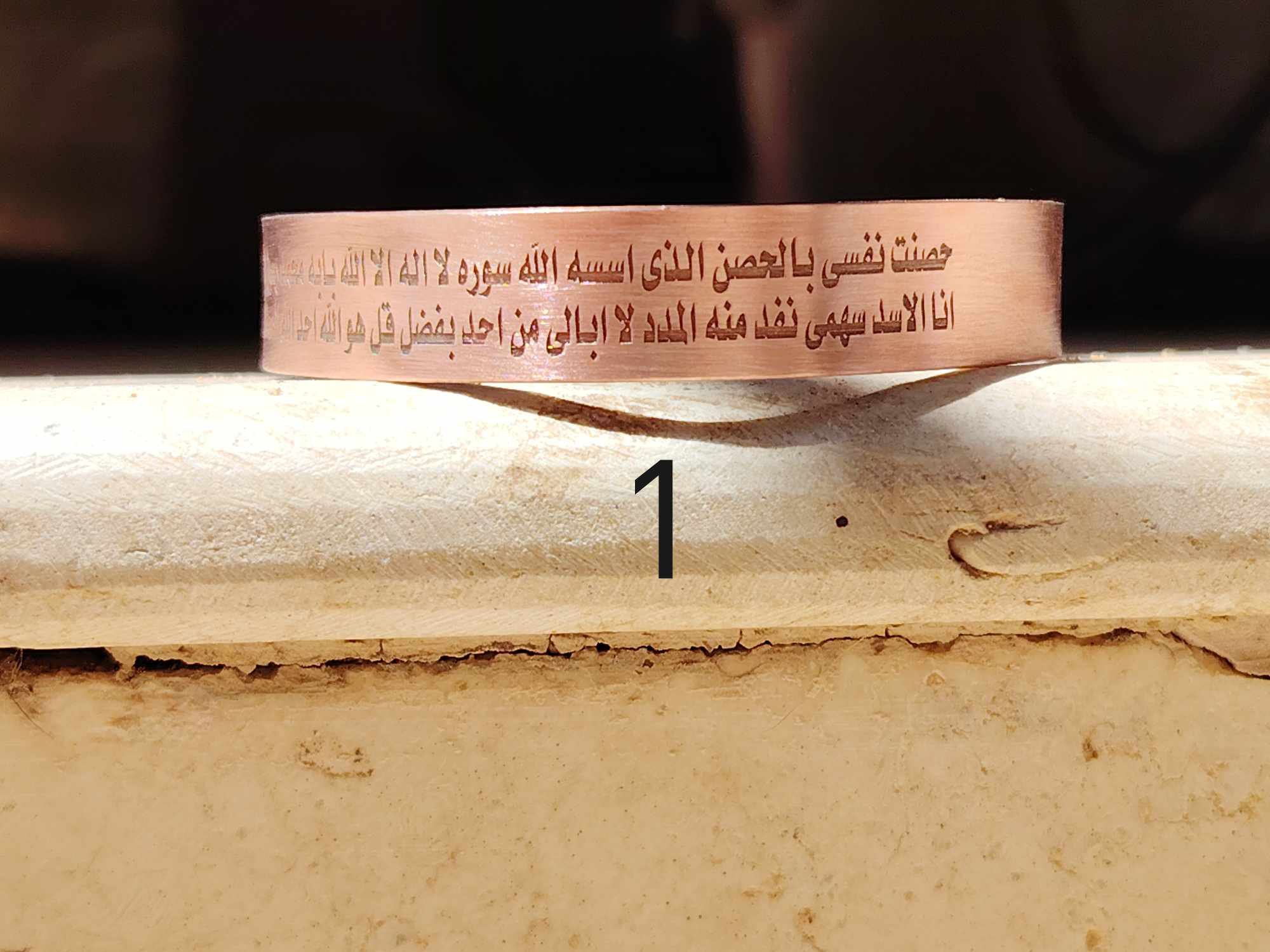 نقش روحاني دقيق على سوار نحاس فاخر، يحمل بركة تحصين سيدي إبراهيم الدسوقي رضي الله عنه.