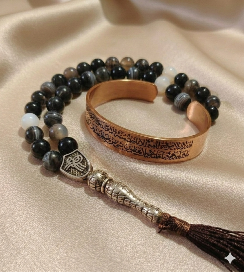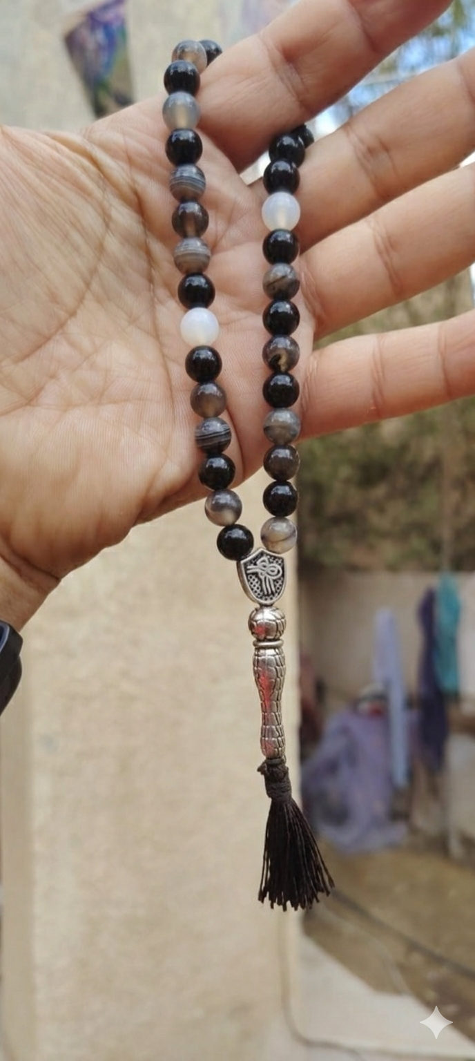 سبحه عقيق سليماني 33حبه 8ملي +اسوره نحاس ايه الكرسي